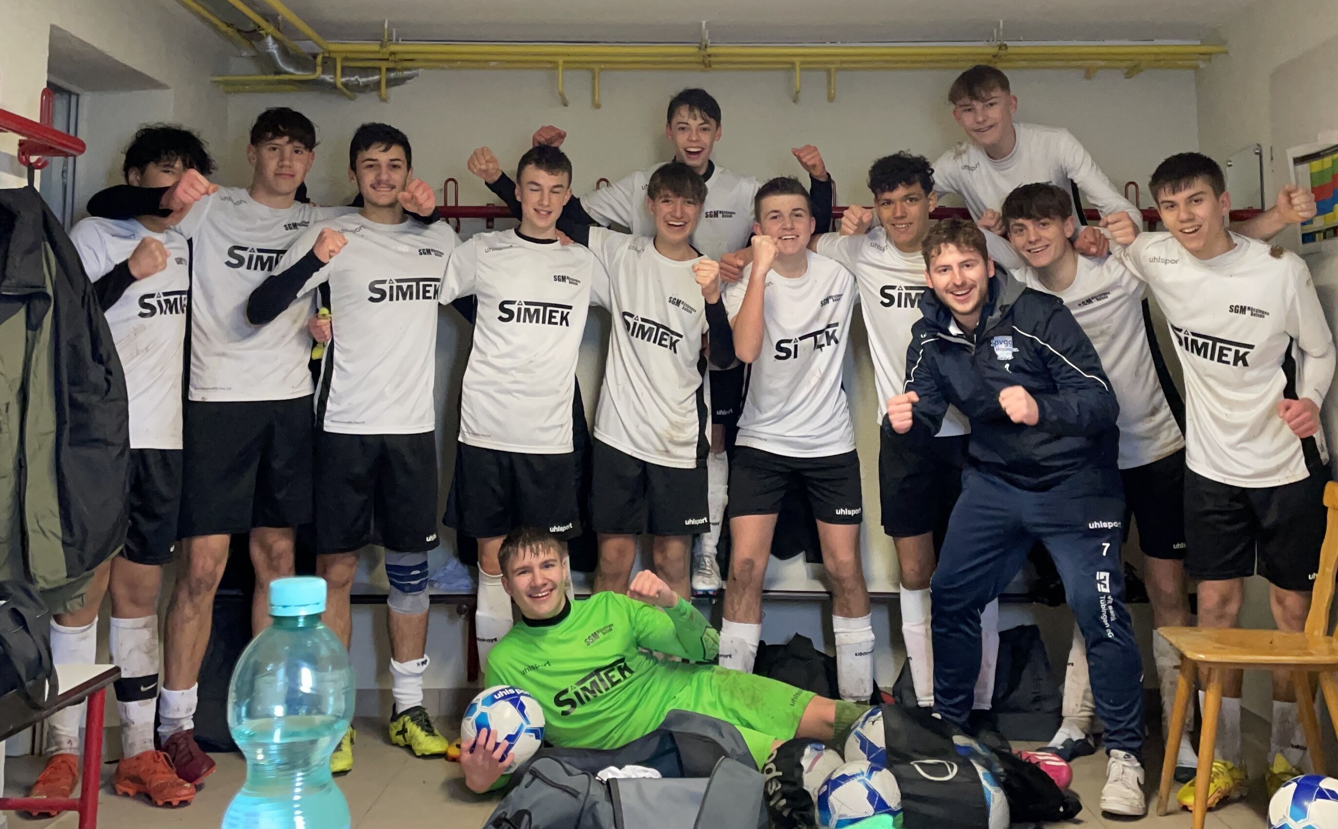 Gute Stimmung in der Kabine nach dem 1:0 Sieg gegen das Landesstaffel Team der TSG Balingen!